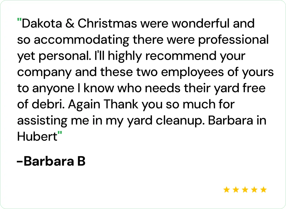 Professional yard waste removal and cleanup services to keep your outdoor spaces tidy and beautiful. Enjoy flexible scheduling, environmentally friendly disposal, an experienced team, and budget-friendly packages.
